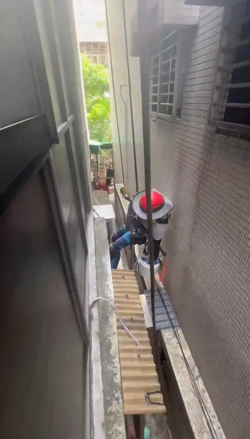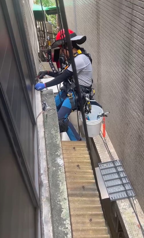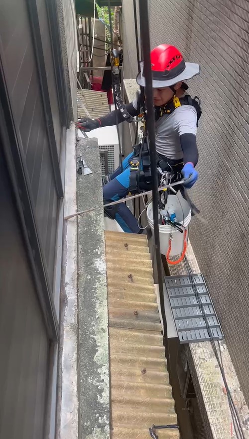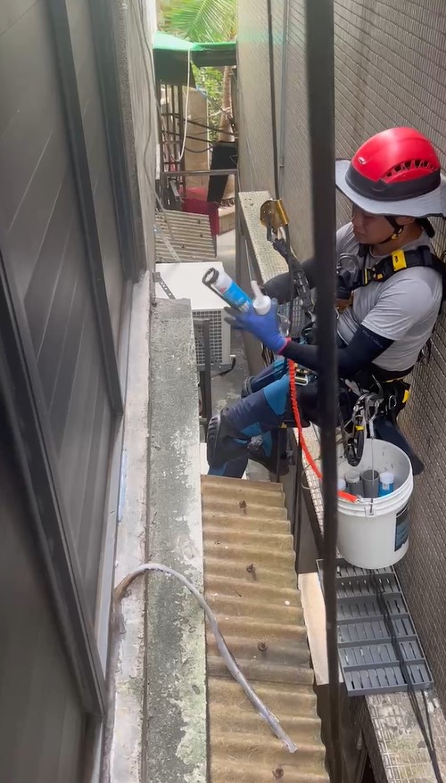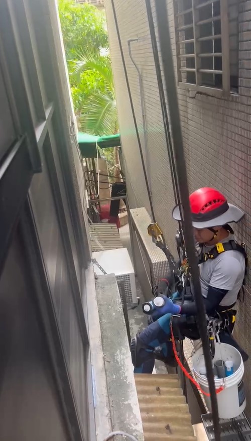 抓漏師傅蜘蛛人將在外牆上施作防水層,並在縫隙處上矽利康進行密封,確保漏水問題徹底解決。這種方法不僅效率高,且無需大範圍破壞,能在短時間內完成修繕,確保建築物的耐用性和防水效果。