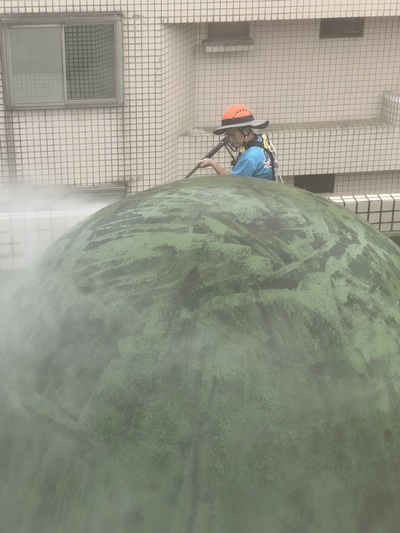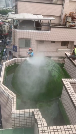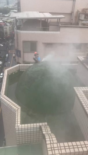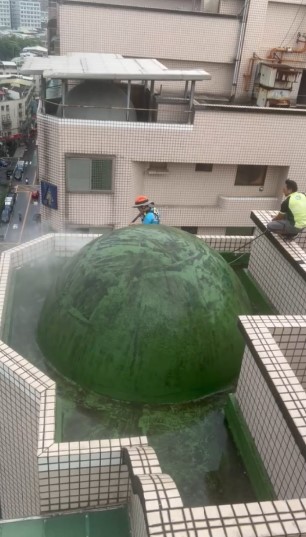 1. 高壓水柱清洗外牆及圓頂