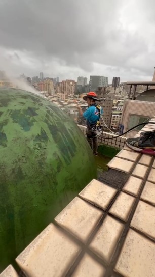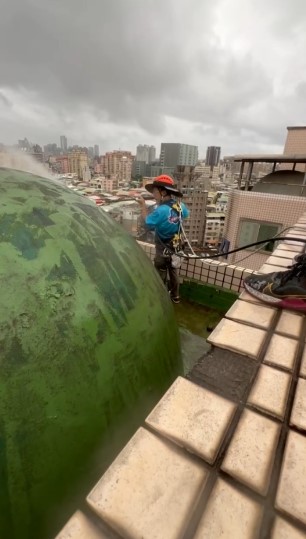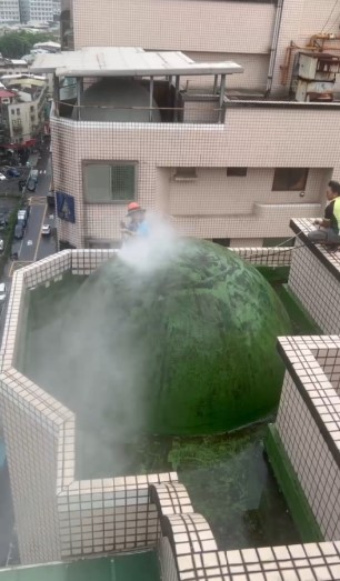 目的:去除外牆和圓頂上的污垢、霉菌、苔蘚等,為後續施工創造乾淨的基礎。
