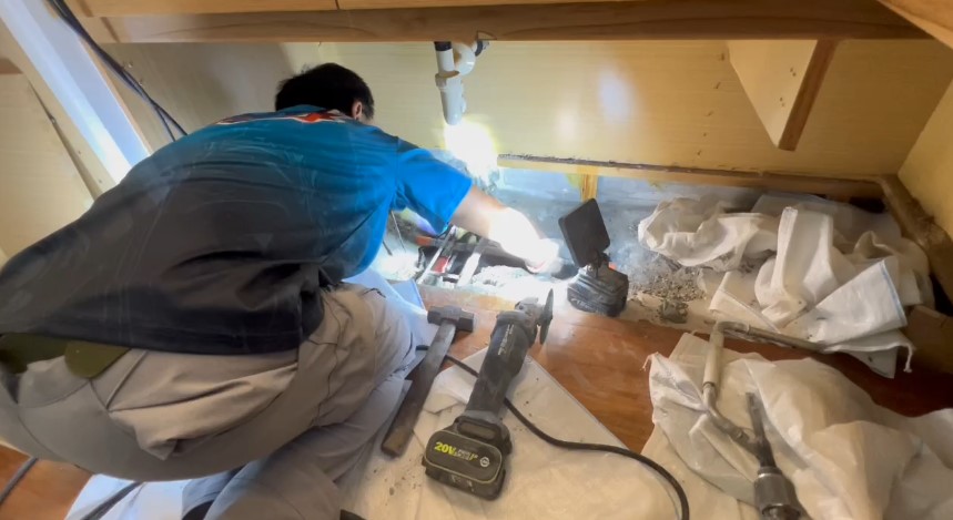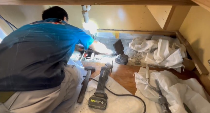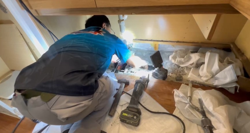 檢測結束後,抓漏魔術師(張家豪抓漏)團隊只需拆除極小範圍的地板,就成功修復了破裂的熱水管。科技抓漏儀器搭配資深專業師傅抓漏雙管齊下,精準快速解決問題